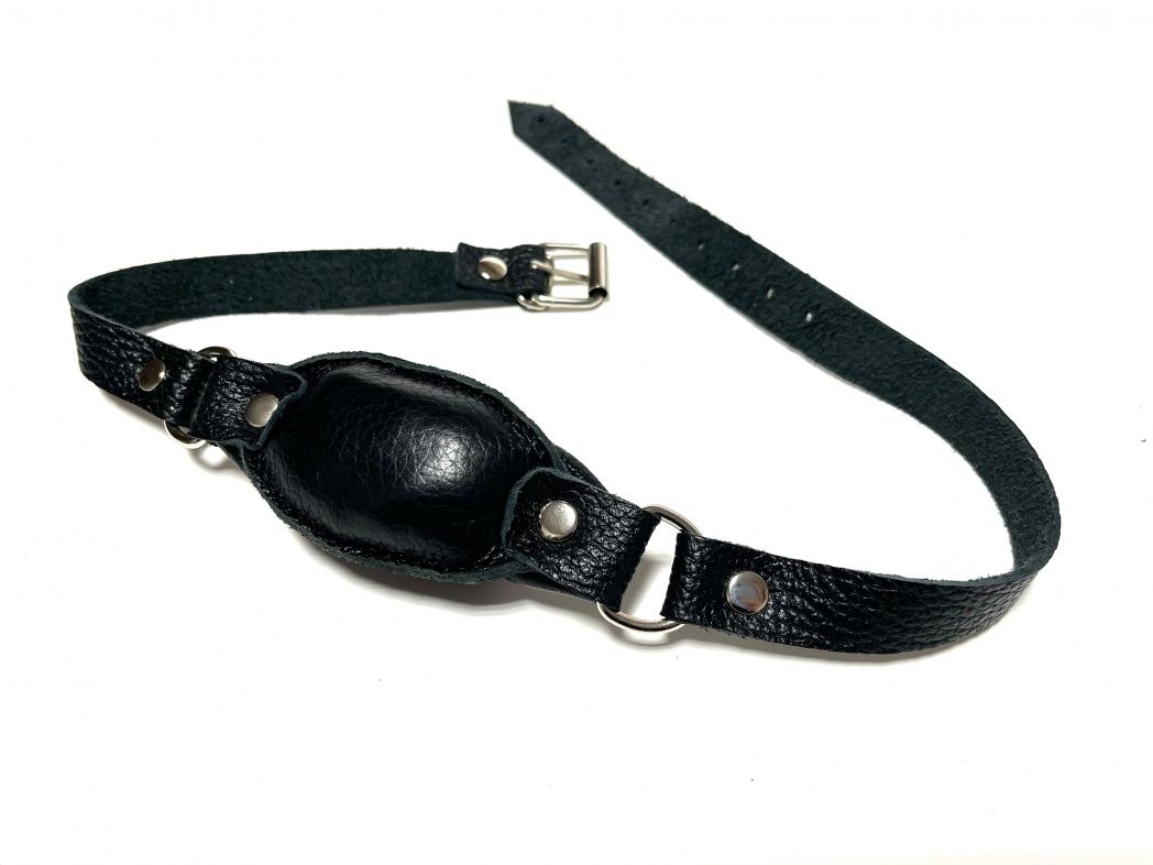Качественный и удобный кляп, выполненный из натуральной кожи черного цвета. Благодаря наполнителю средней жесткости этот кляп будет комфортен в использовании. Аксессуар декорирован сварной металлической фурнитурой. Обхват удобно регулируется с помощью металлической пряжки. Отличный аксессуар для любовной игры и новых ощущений! Размер кляпа - 9х5 см. Ширина ремешков - 1,8 см.