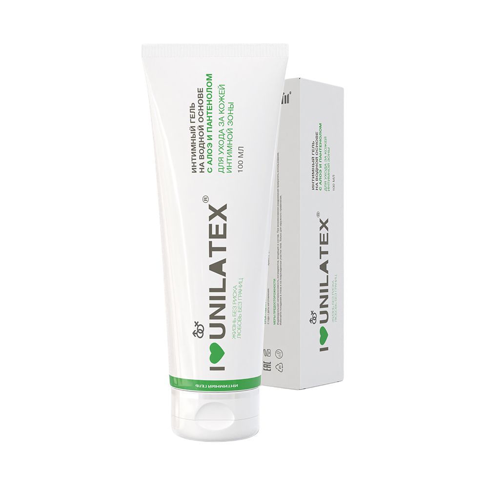 Интимный гель на водной основе Unilatex Gel Aloe Vera + Vitamin E. Содержит натуральный сок алоэ. Не имеет запаха. Совместим со всеми видами латексных изделий. Гипоаллергенный, растворим в воде, не оставляет пятен, не содержит токсичных компонентов, без пузырьков воздуха. Комплекс Алоэ Вера+Витамин Е оказывает смягчающее и восстанавливающее действие на кожу.